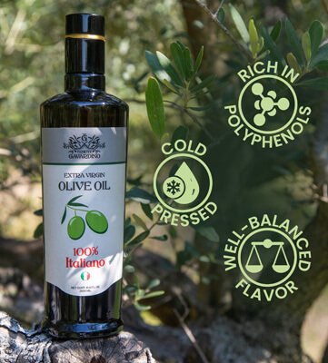 PROPERTY: oil is very rich in polyphenols and containing a high concentration of oleic acid (never less than 75% on average). Polyphenols are among the most precious components of extra virgin olive oil, the only one among vegetable fats to be rich in it. These substances are very rich in antioxidants that have many beneficial effects for our body.